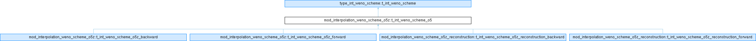 Inheritance diagram for mod_interpolation_weno_scheme_o5z::t_int_weno_scheme_o5:Static Public Member Functions | |