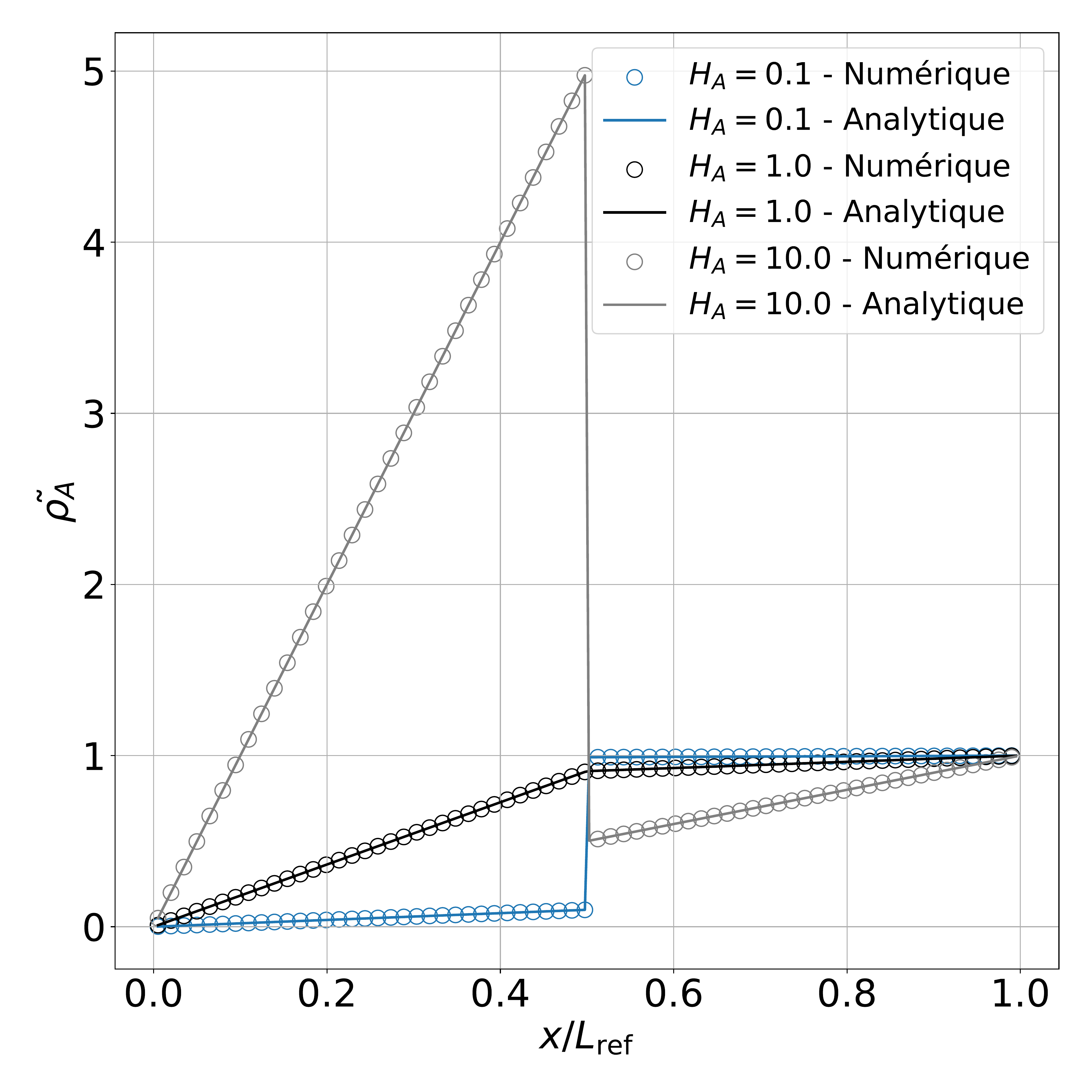 The obtained results show an excellent agreement between the numerical solution and the analytical profiles, regardless of the value of \(H_A \).
